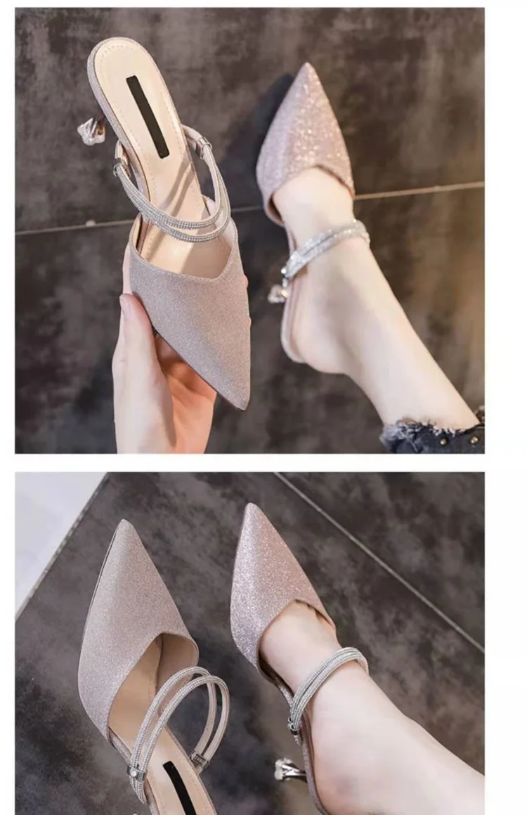 These sandals feature a chic, feminine design with a fine heel and a half-slipper style, perfect for the 2025 spring/summer season.