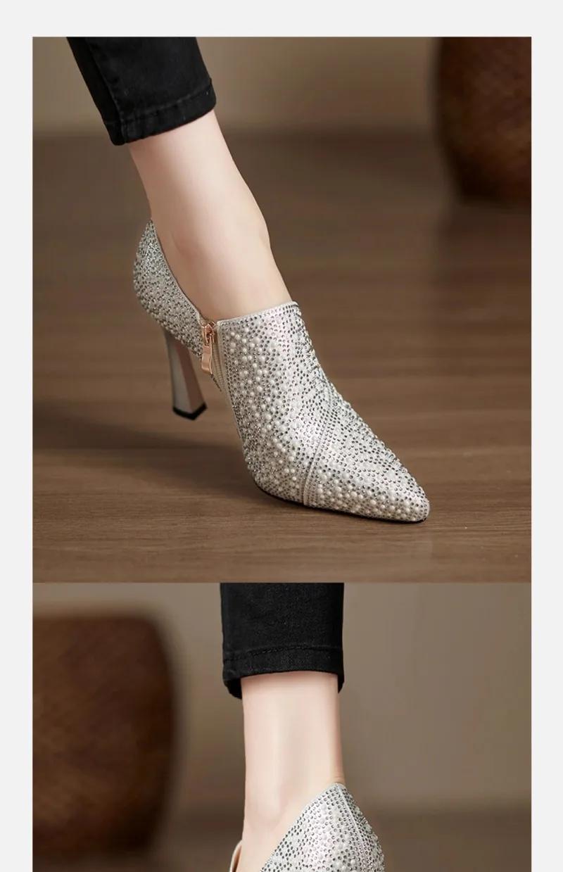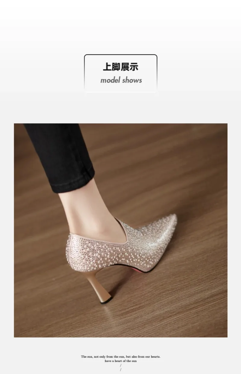 Rhinestone High Heels Shoes Sexy Pointed Toe High Heel Single Shoe Luxury Pearl Crystal Wedding Shoe Champagne Pumps Bride Shoes