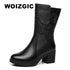 WOIZGIC Women's Female Ladies Mother Genuine Leather Mid Calf Boots Shoes Warm Fur Plush Winter Zipper Flower Commute Non-Slip