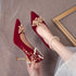 Women Red High Heel Shoes Elegant Fashion Designer Pointed Tip Fine High Heels Women Water Diamond Banquet Wedding Shoes Tacones