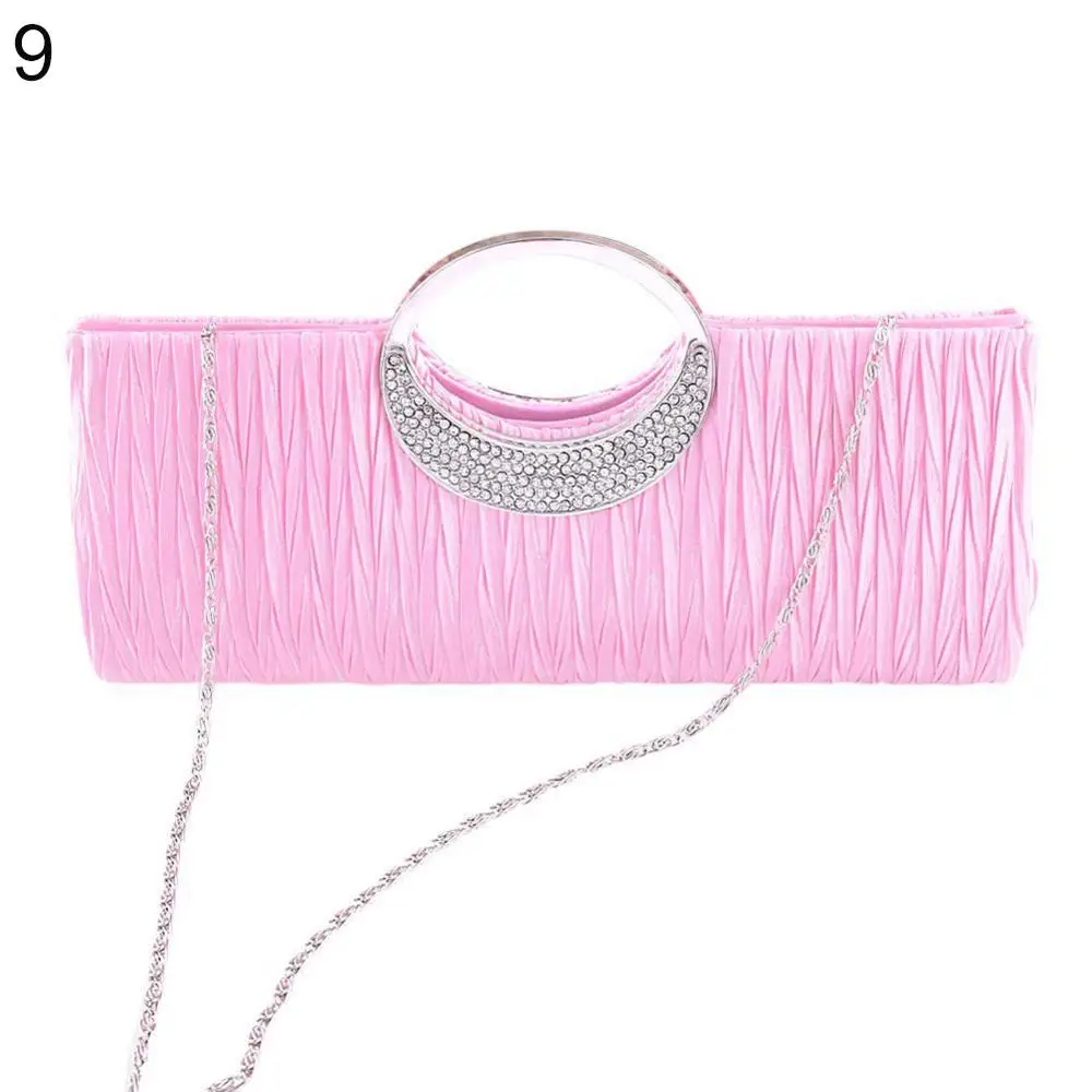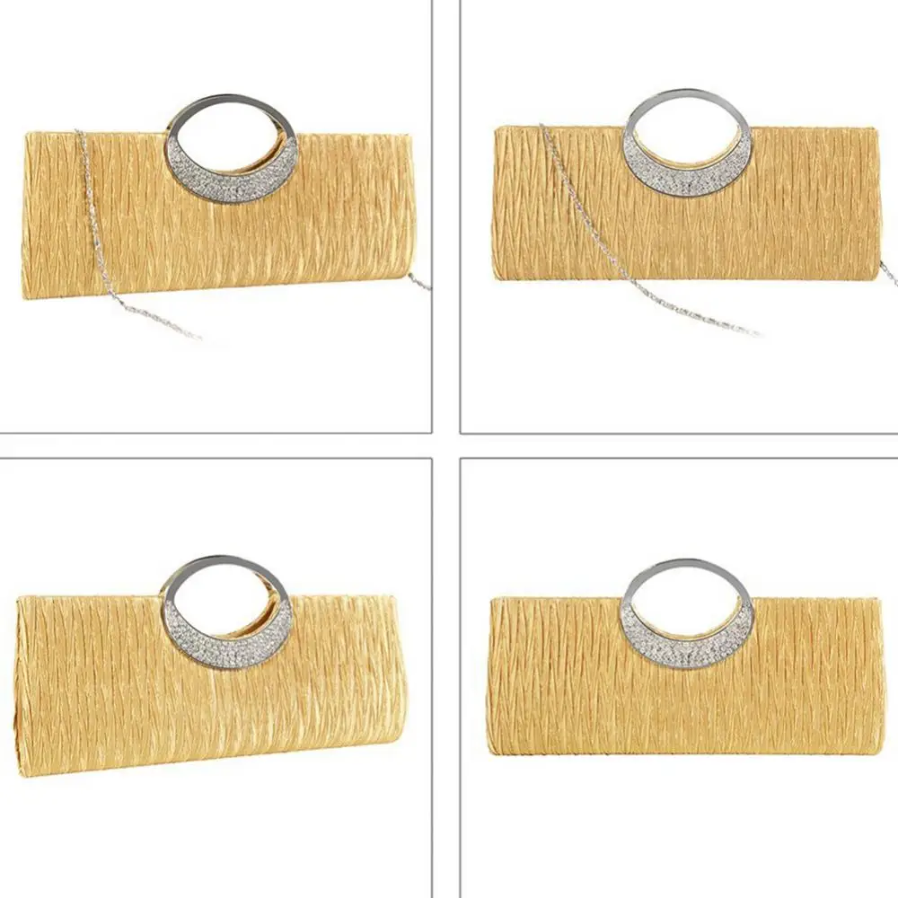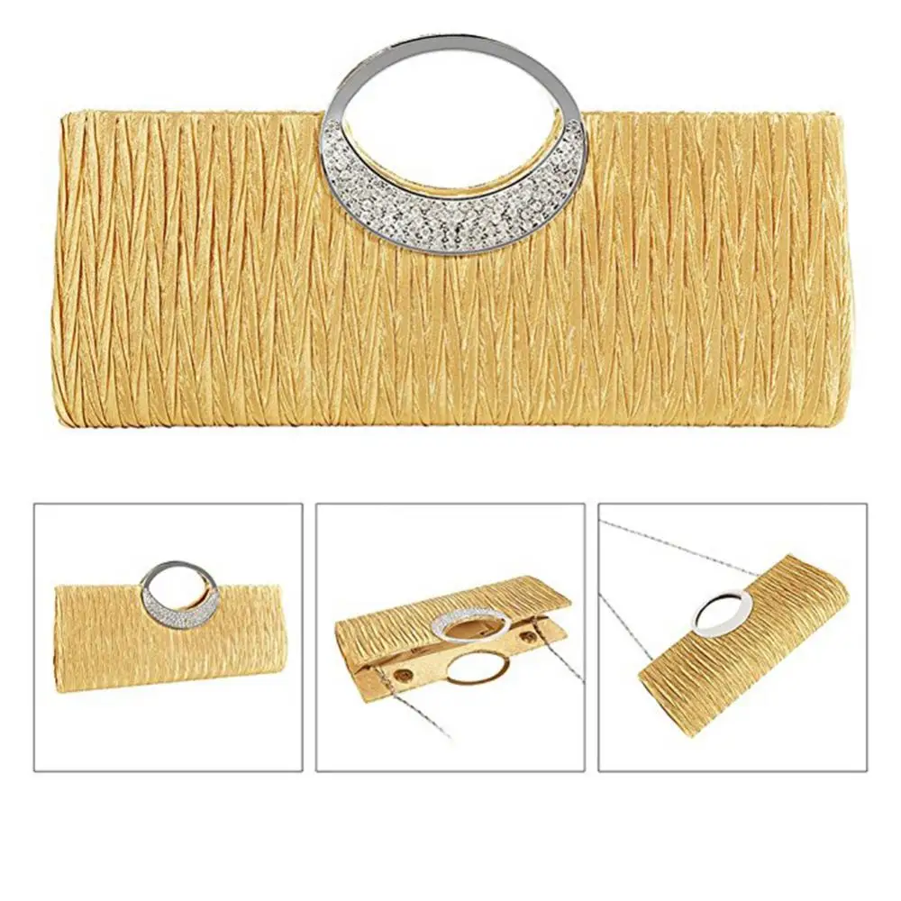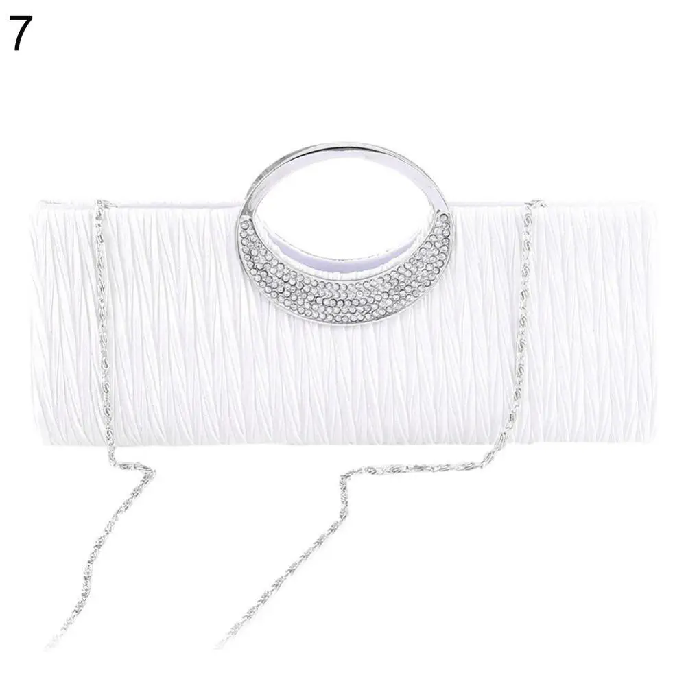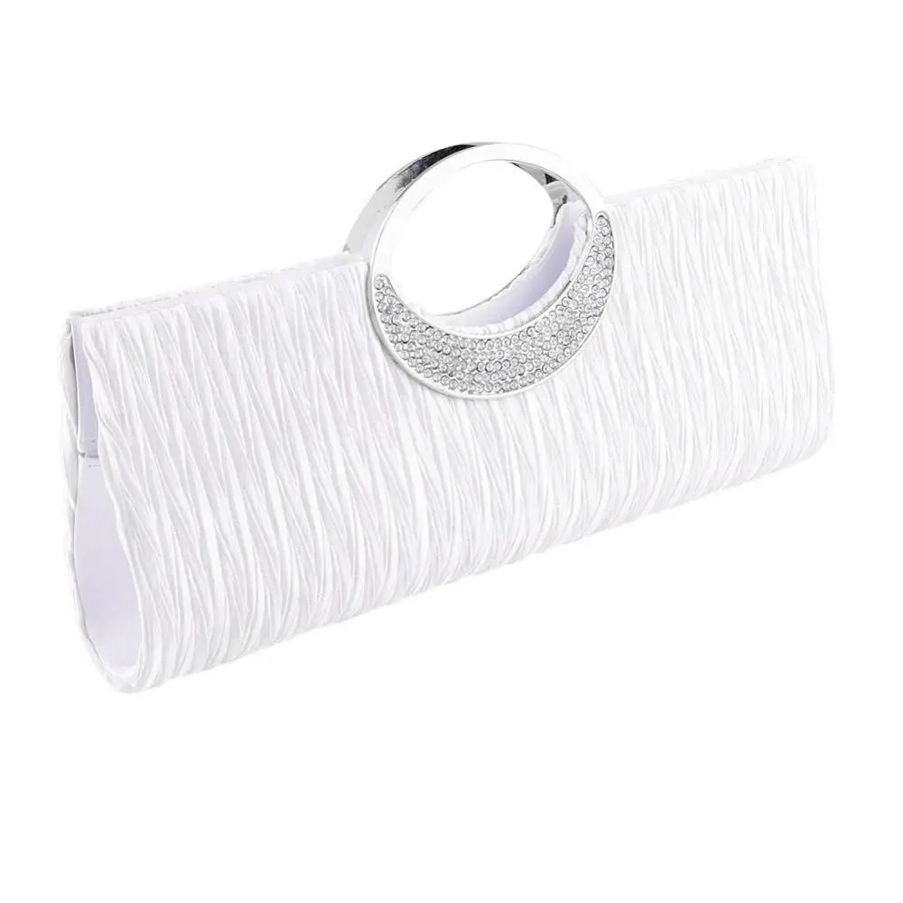 Women Luxury Rhinestone Satin Pleated Evening Bag Party Clutch Purse Handbag