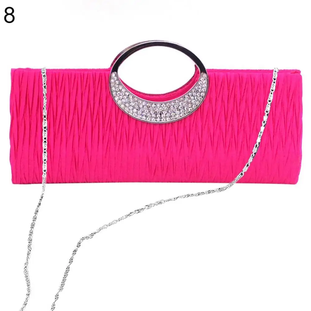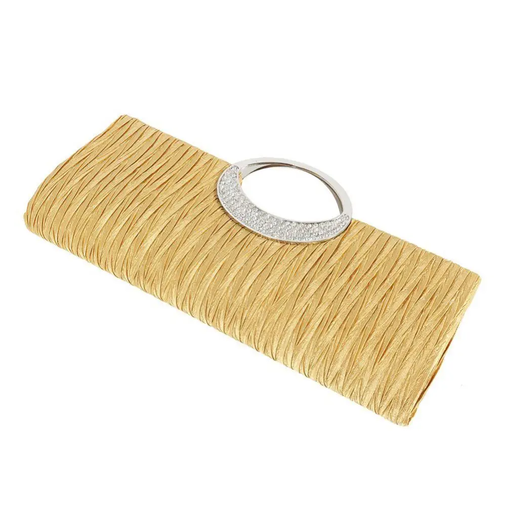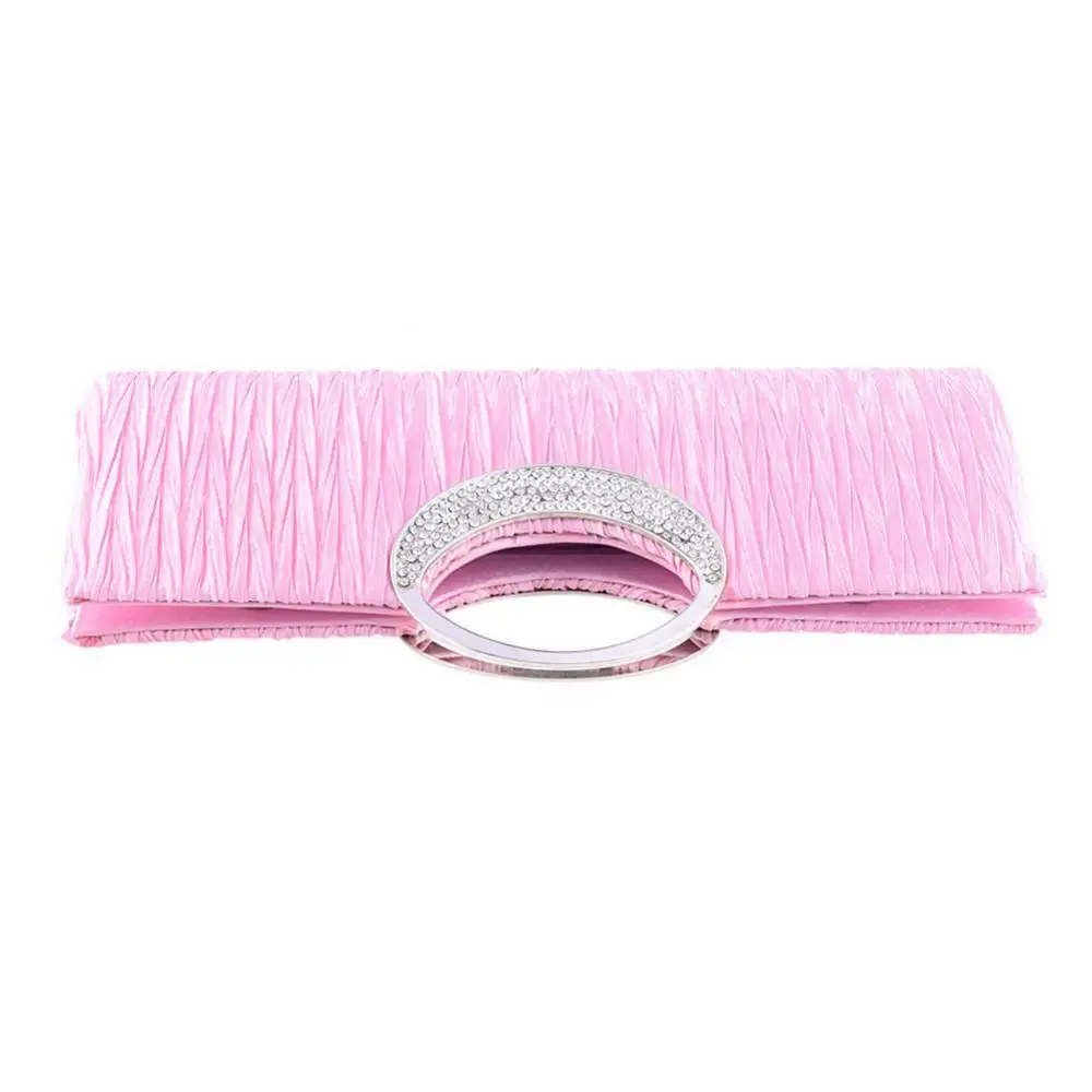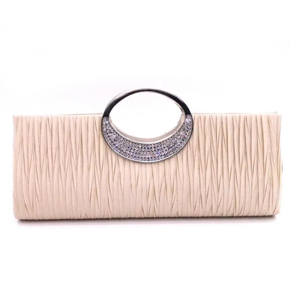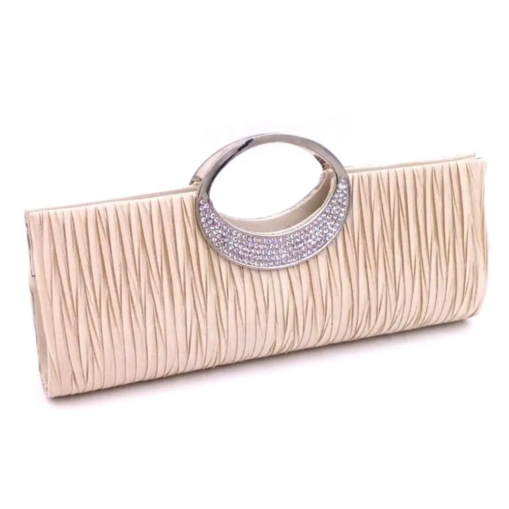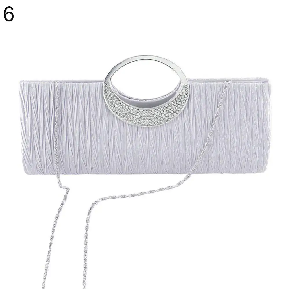 Women Luxury Rhinestone Satin Pleated Evening Bag Party Clutch Purse Handbag