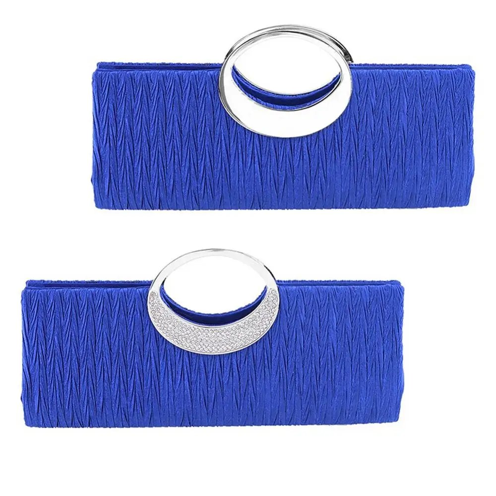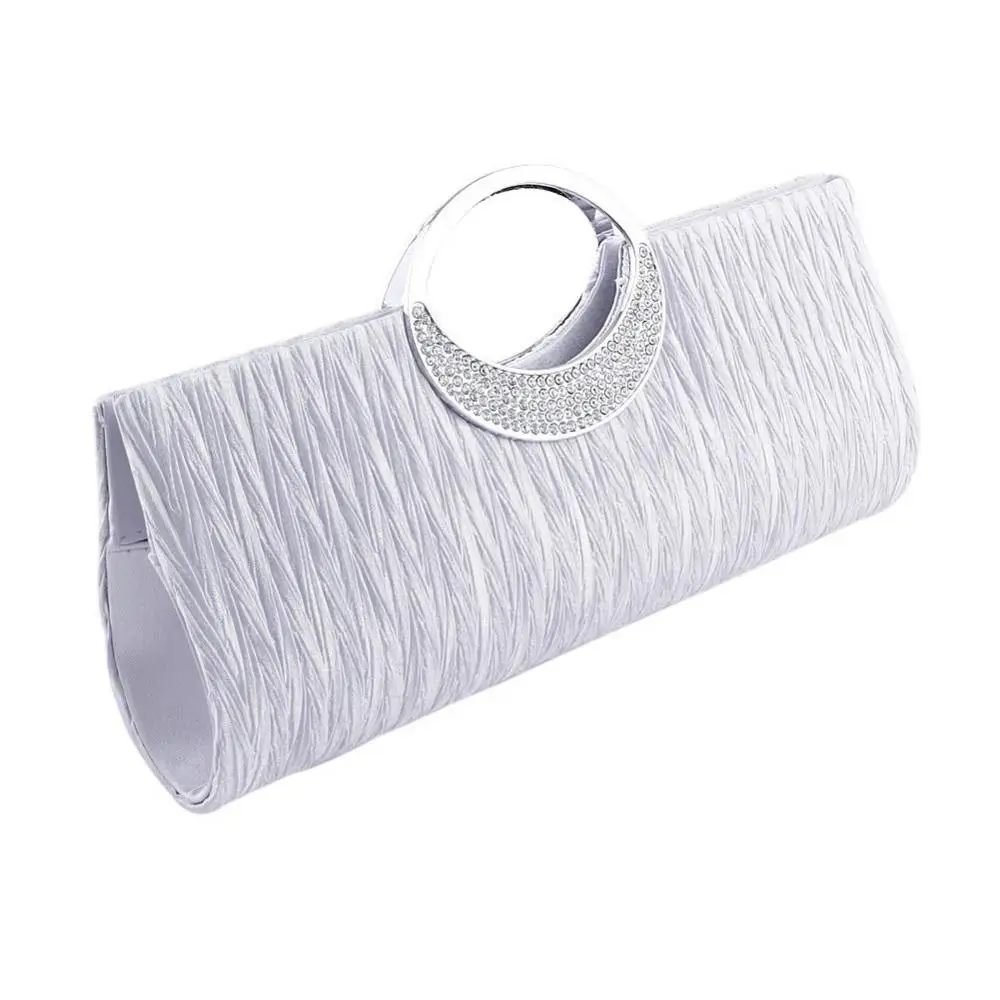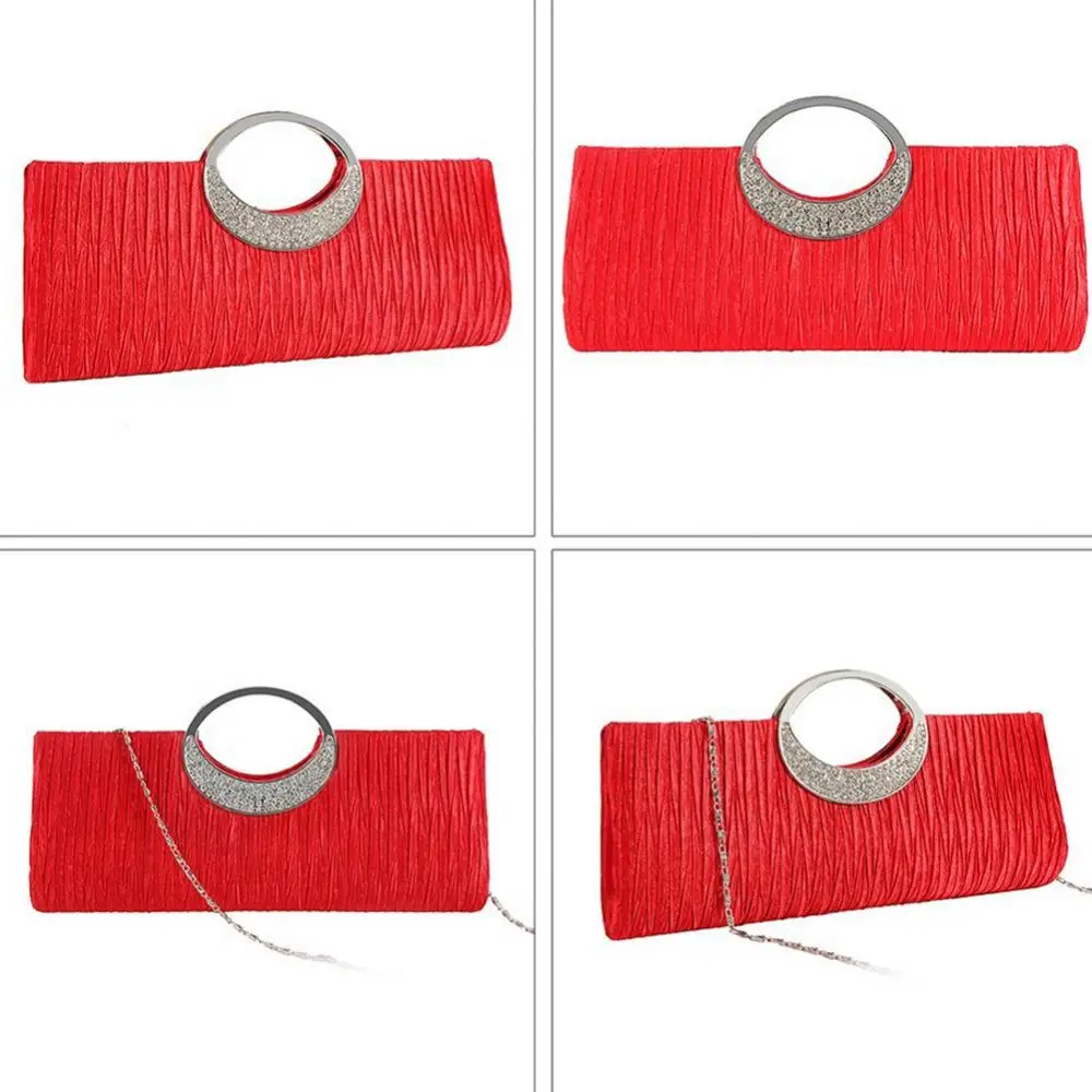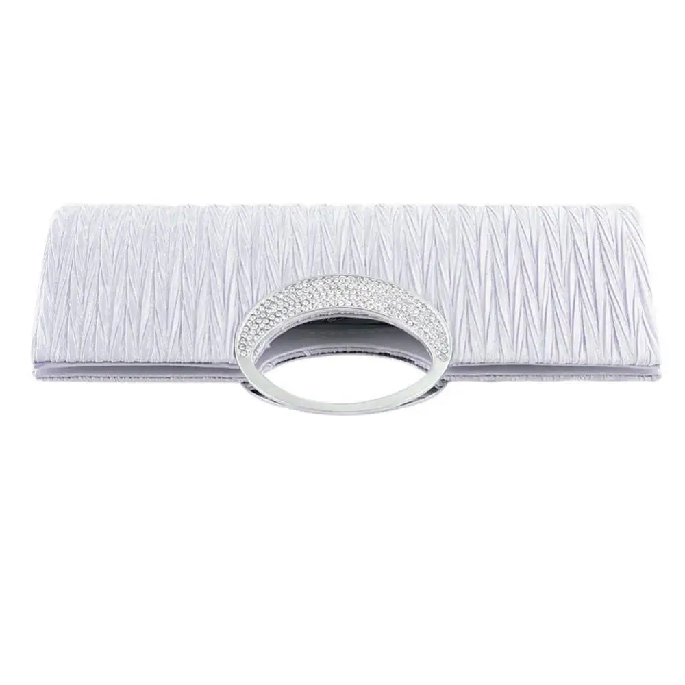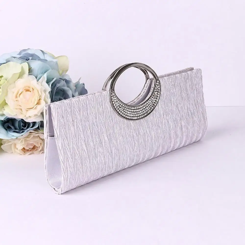 Women Luxury Rhinestone Satin Pleated Evening Bag Party Clutch Purse Handbag