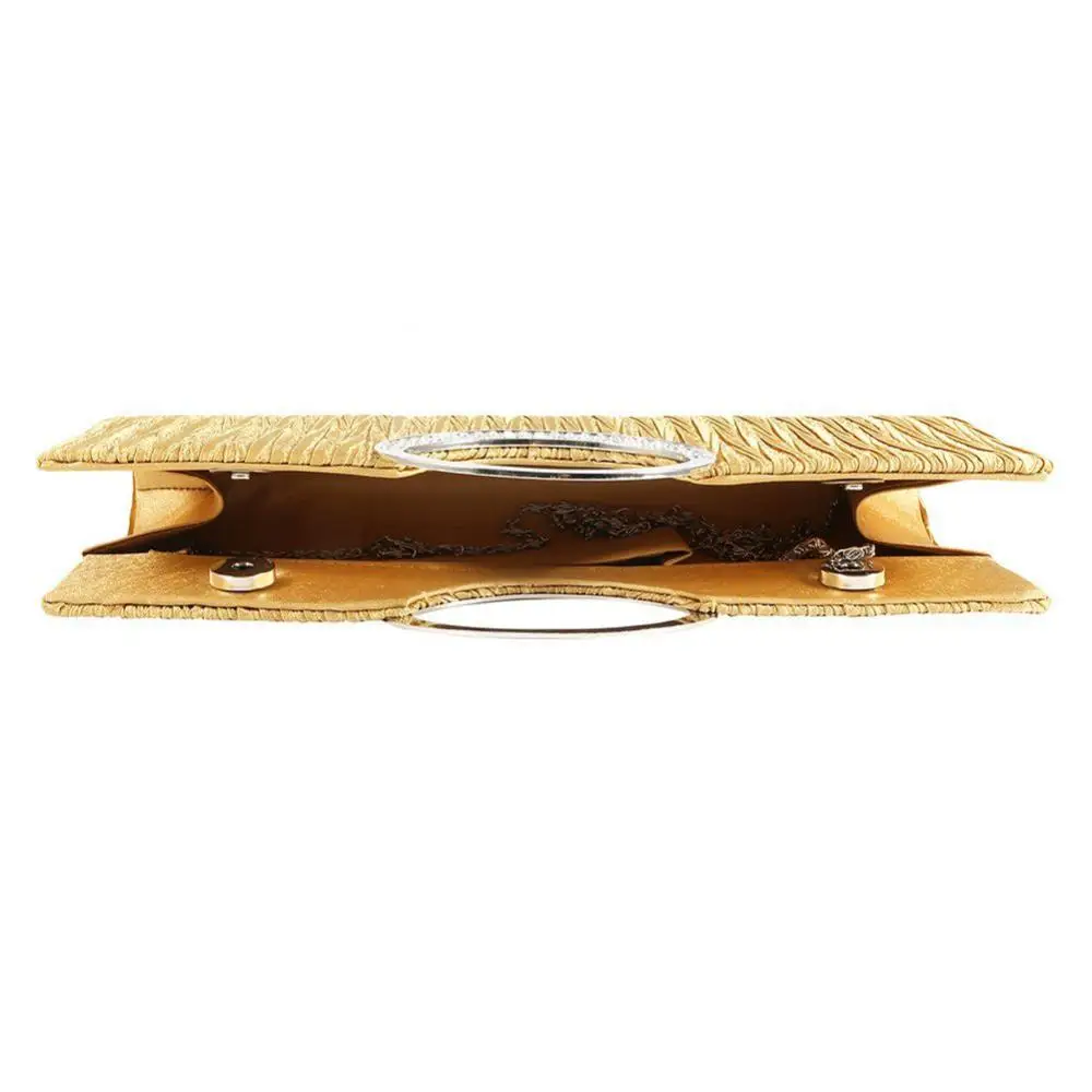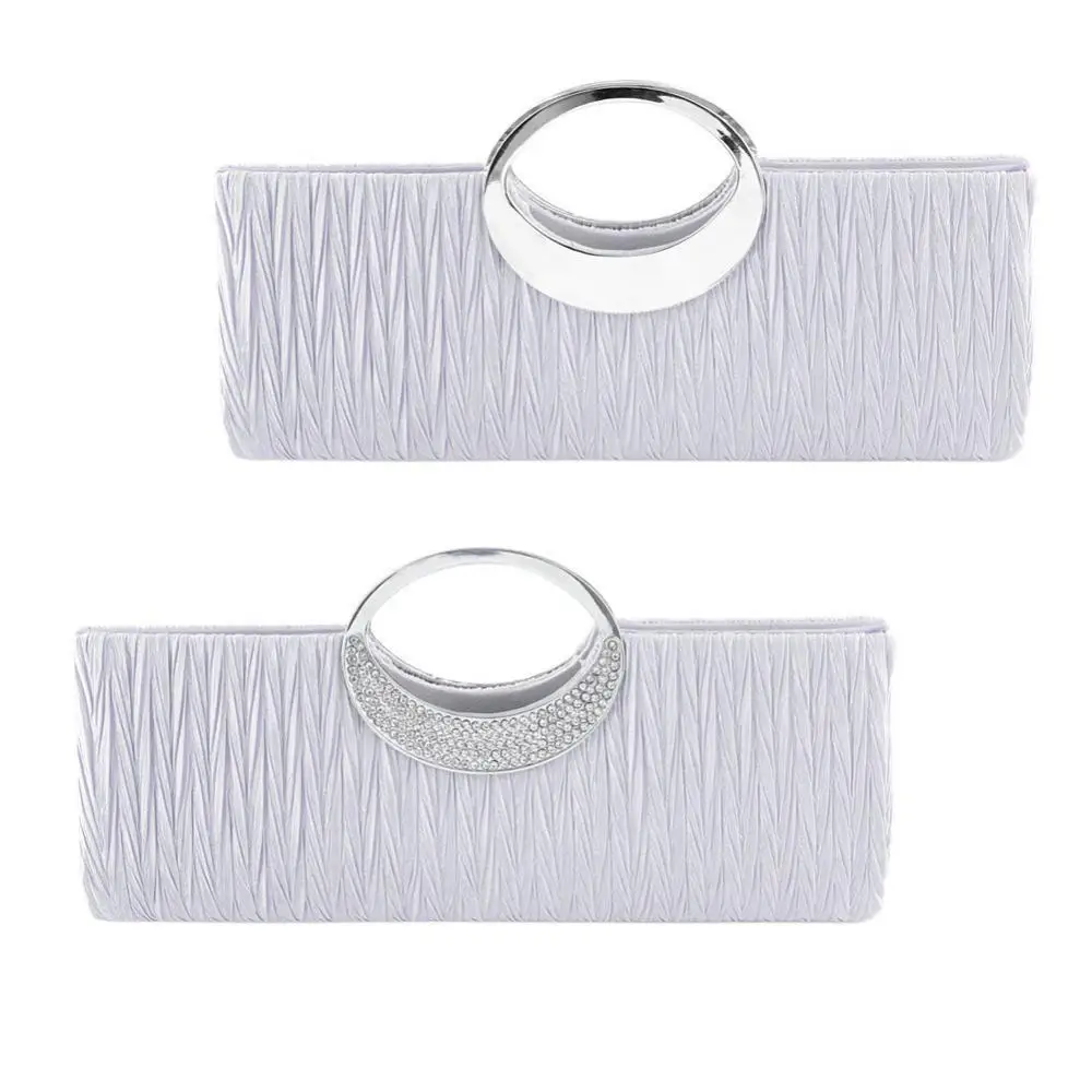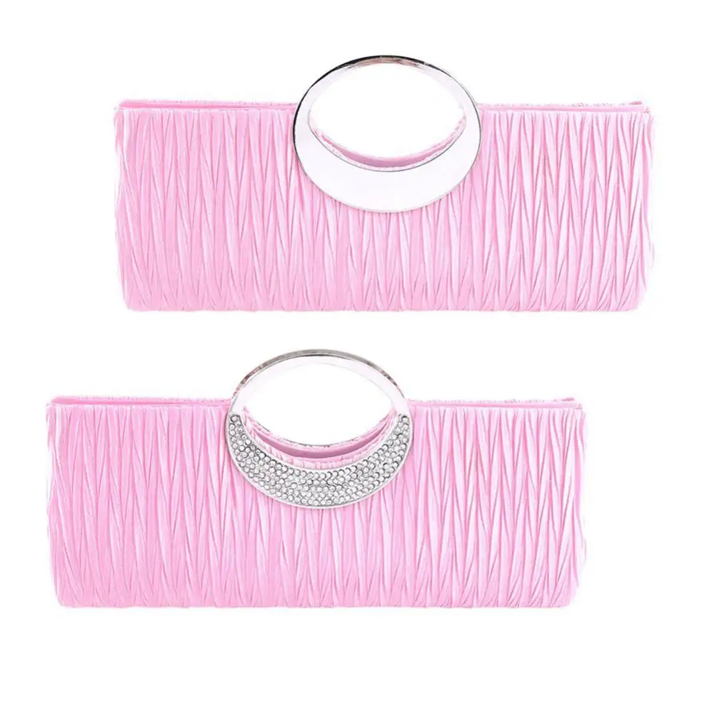 Elevate your evening ensemble with this luxury handheld bag from Mohammad Collection. Crafted from smooth satin with exquisite pleating and adorned with sparkling rhinestones, it adds a refined touch to any occasion. Designed for versatility, it can be carried by hand or worn as a shoulder bag, perfect for parties or formal events