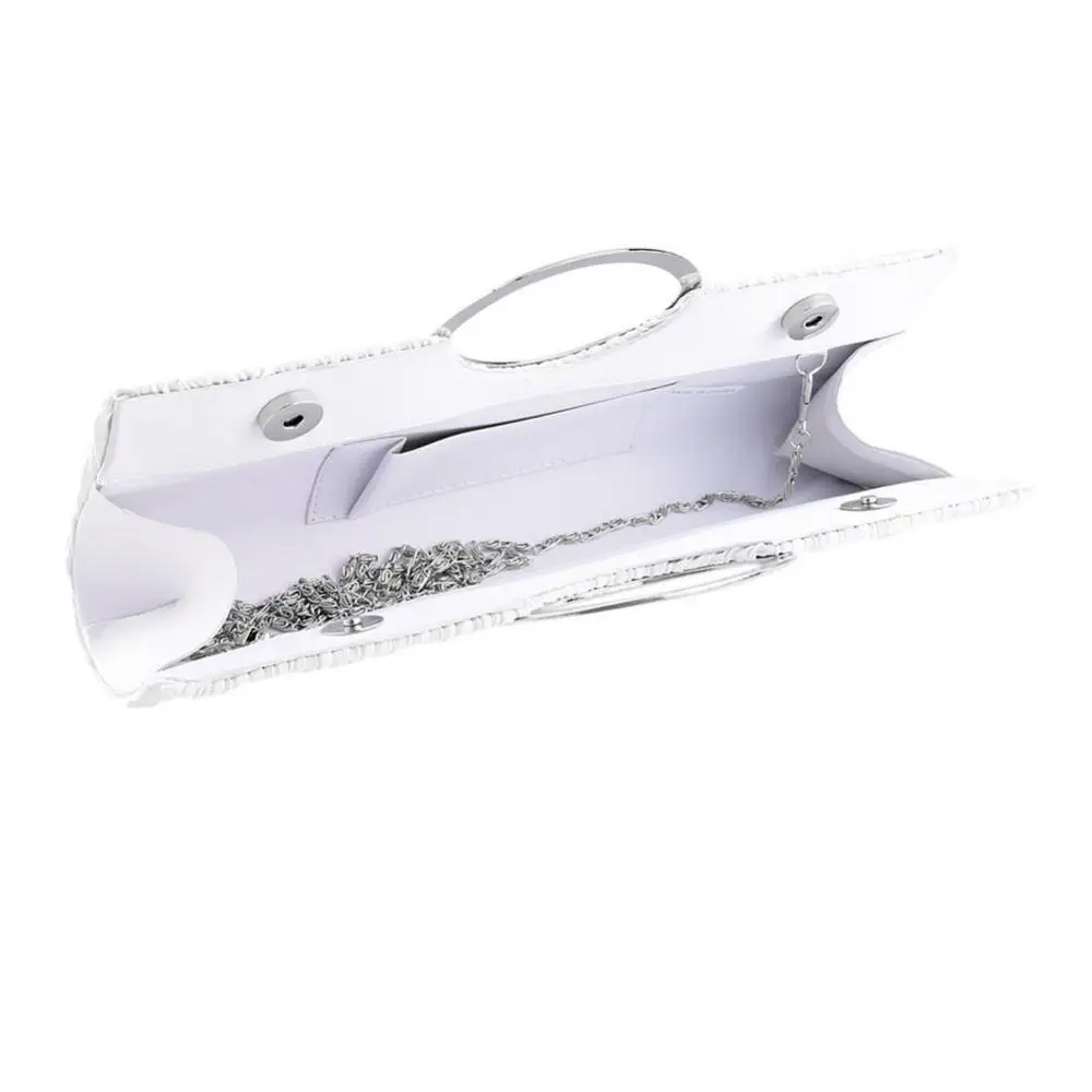 You can hold this evening bag in your hand or you can also use it as a shoulder bag with the chain.