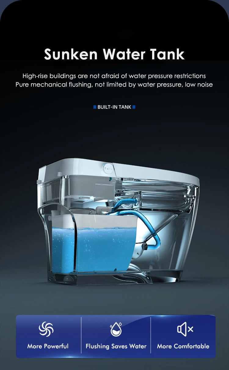 Experience next-level sanitation with the MC Intelligent Toilet, designed for both domestic and commercial use. Featuring wireless remote control and efficient floor venting, this intelligent toilet with cistern offers seamless operation and superior hygiene. Its advanced technology ensures convenience, comfort, and water efficiency, making it an expert choice for modern bathrooms. Trust MC for reliable, smart sanitation solutions.