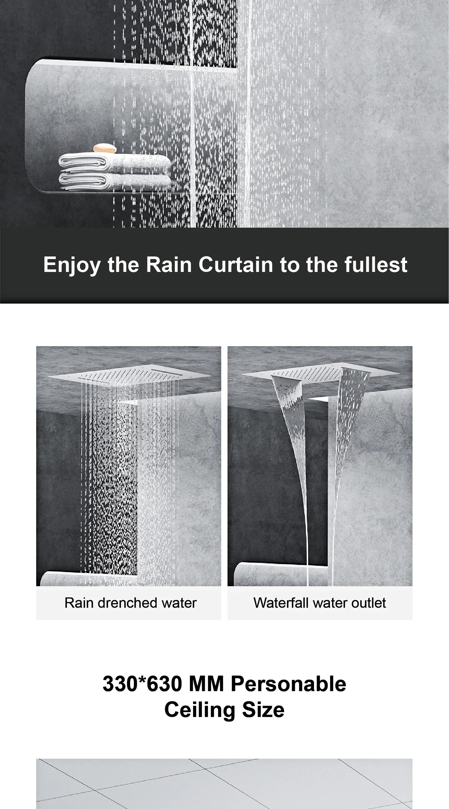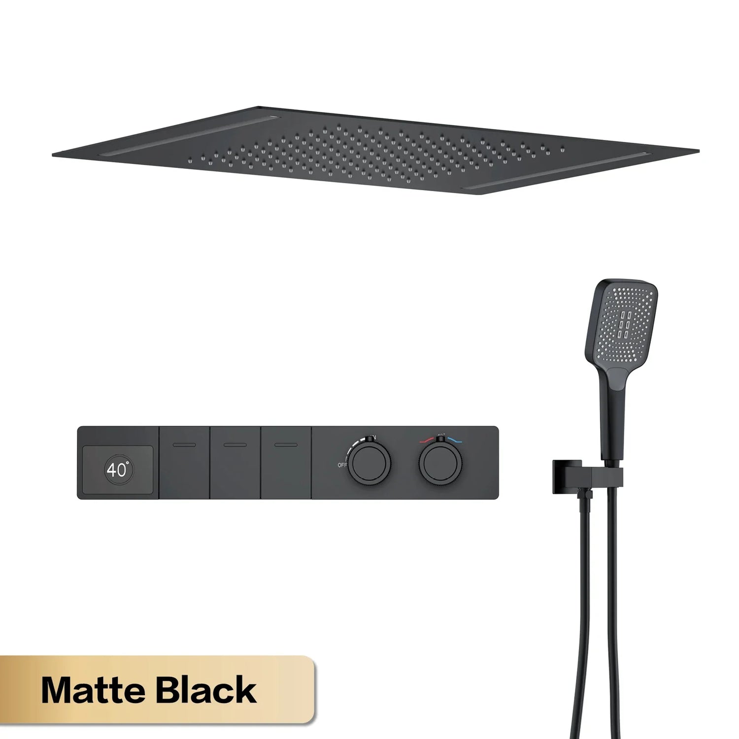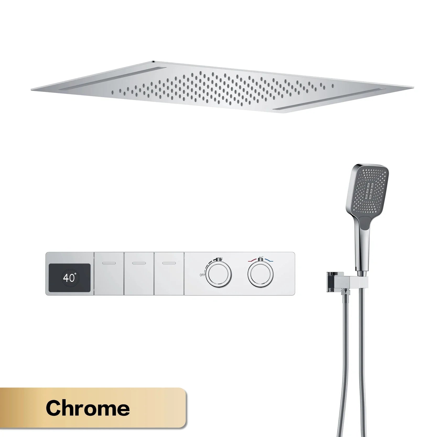 Experience precise temperature control with the MC Luxury Brass Gun Gray Ceiling Shower System. Featuring an embedded LED digital display, it allows seamless adjustment of hot and cold water for a comfortable shower experience. Crafted from durable brass with a sleek gun gray finish, this shower system combines functionality and elegance, ensuring consistent water temperature and long-lasting performance in your bathroom.