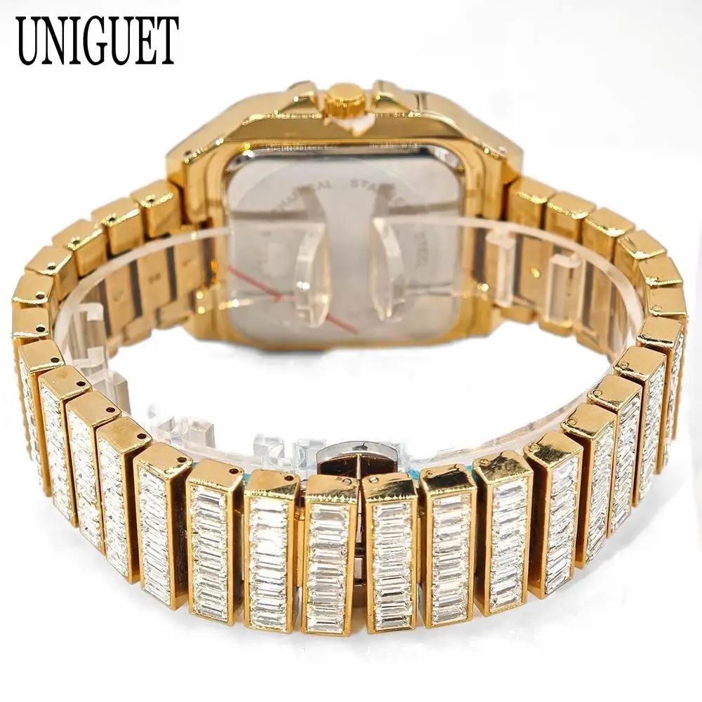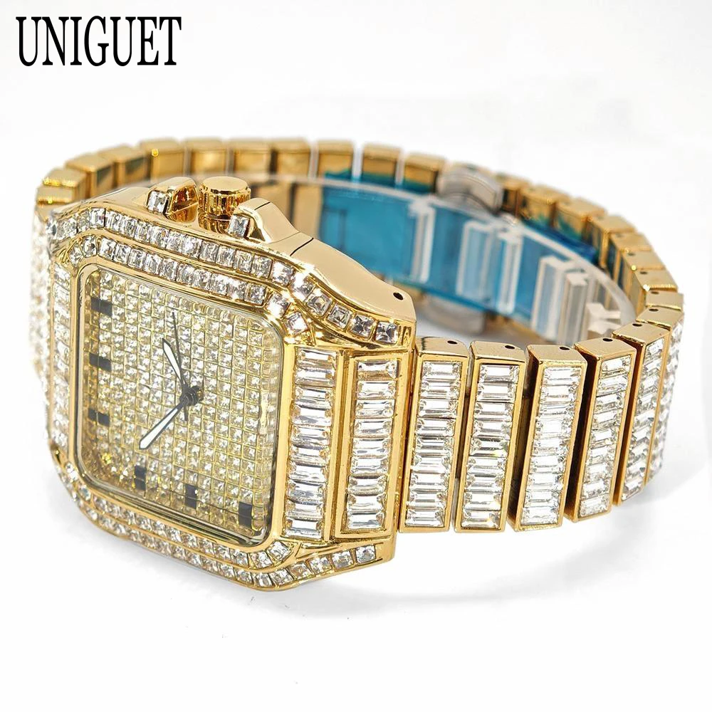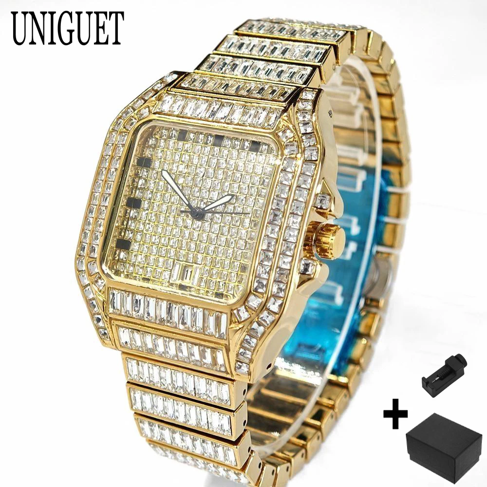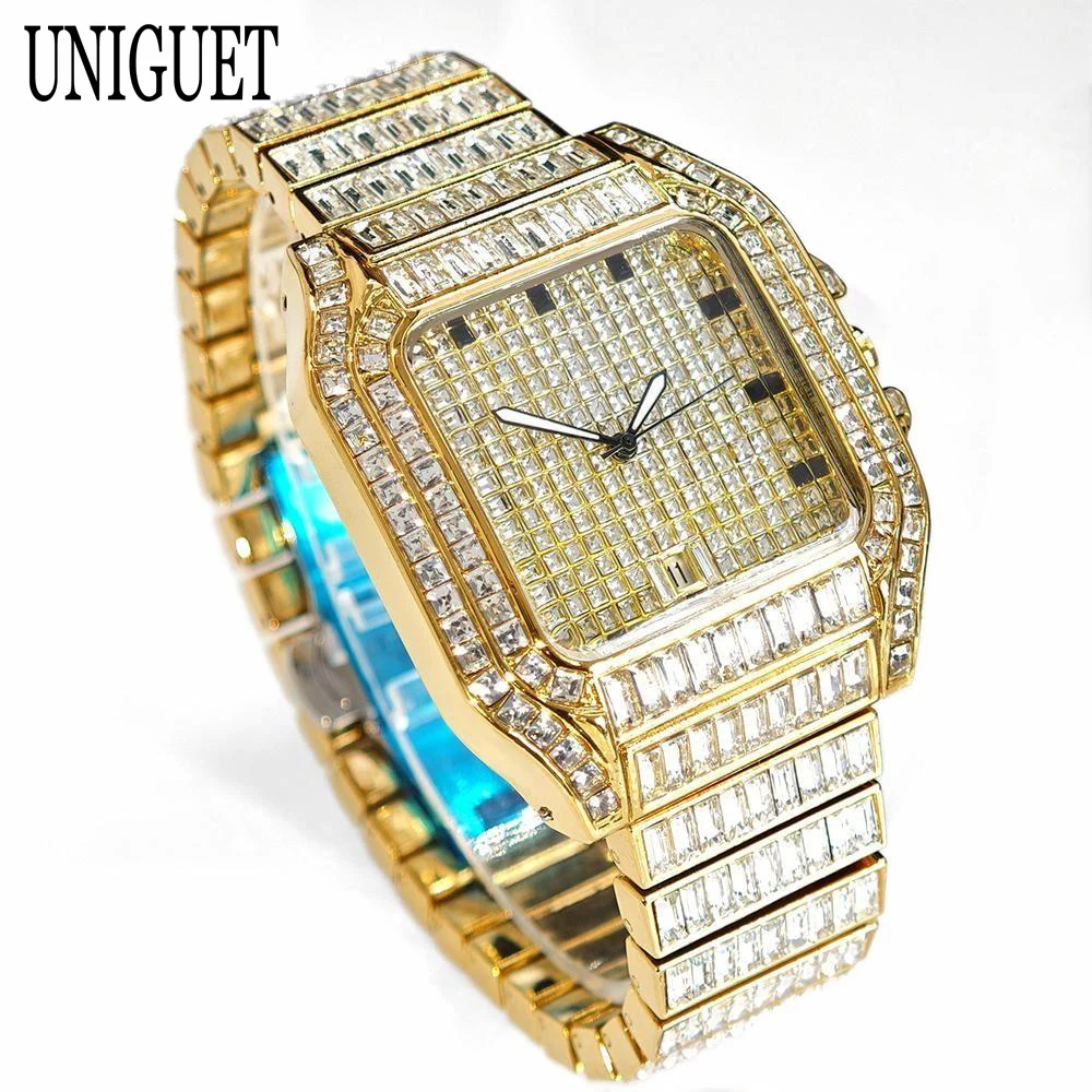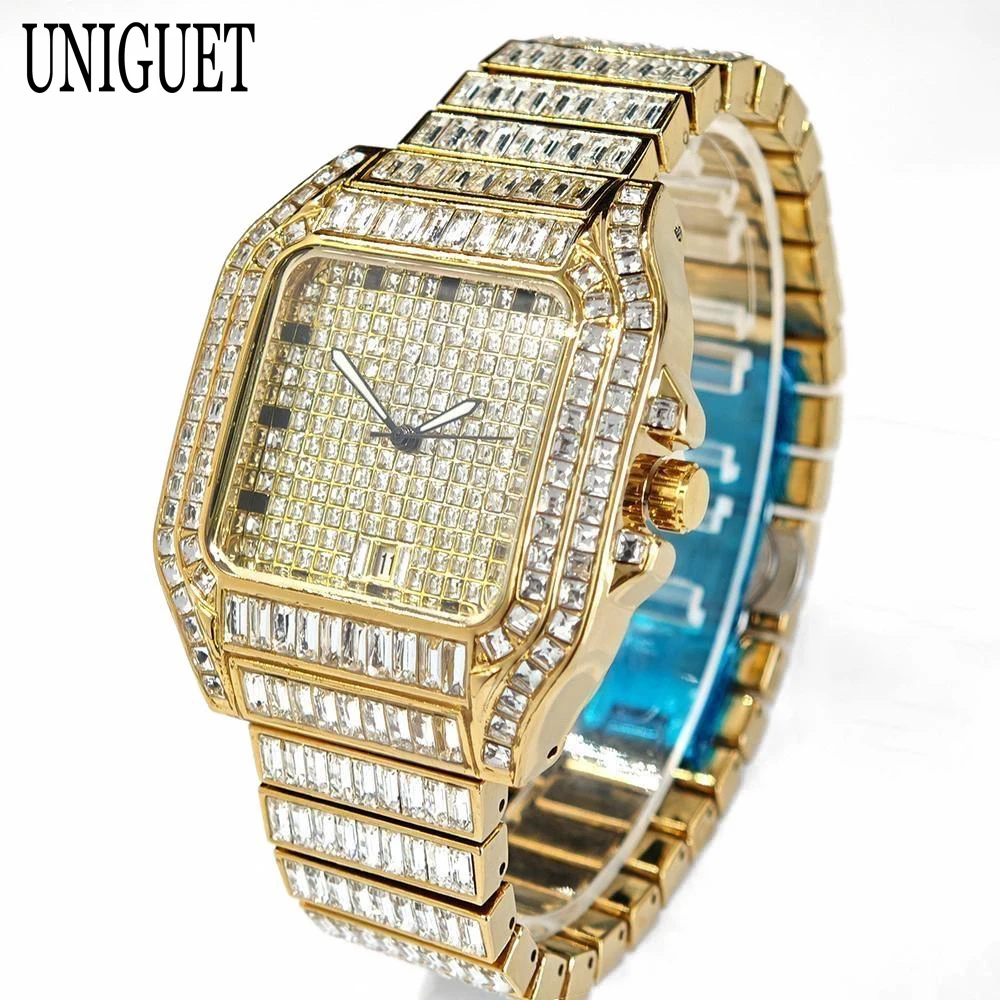 Luxury Rose Watch For Man Fashion Stainless steel Quartz Watches Men Hip Hop Rectangle Iced Out Diamond Wrist Watch reloj hombre