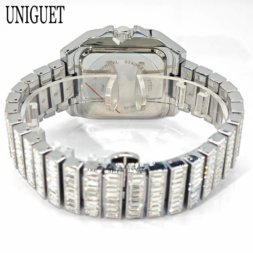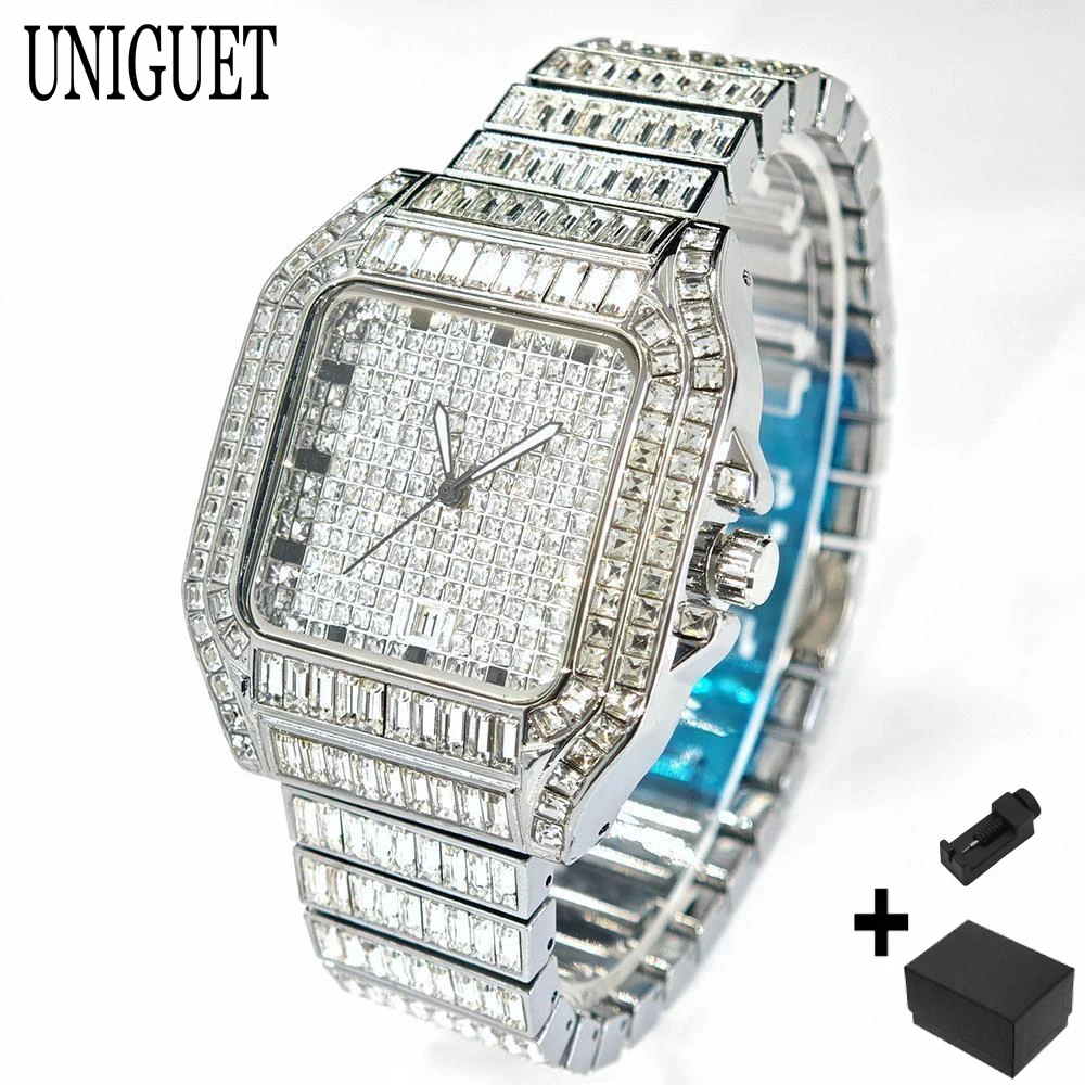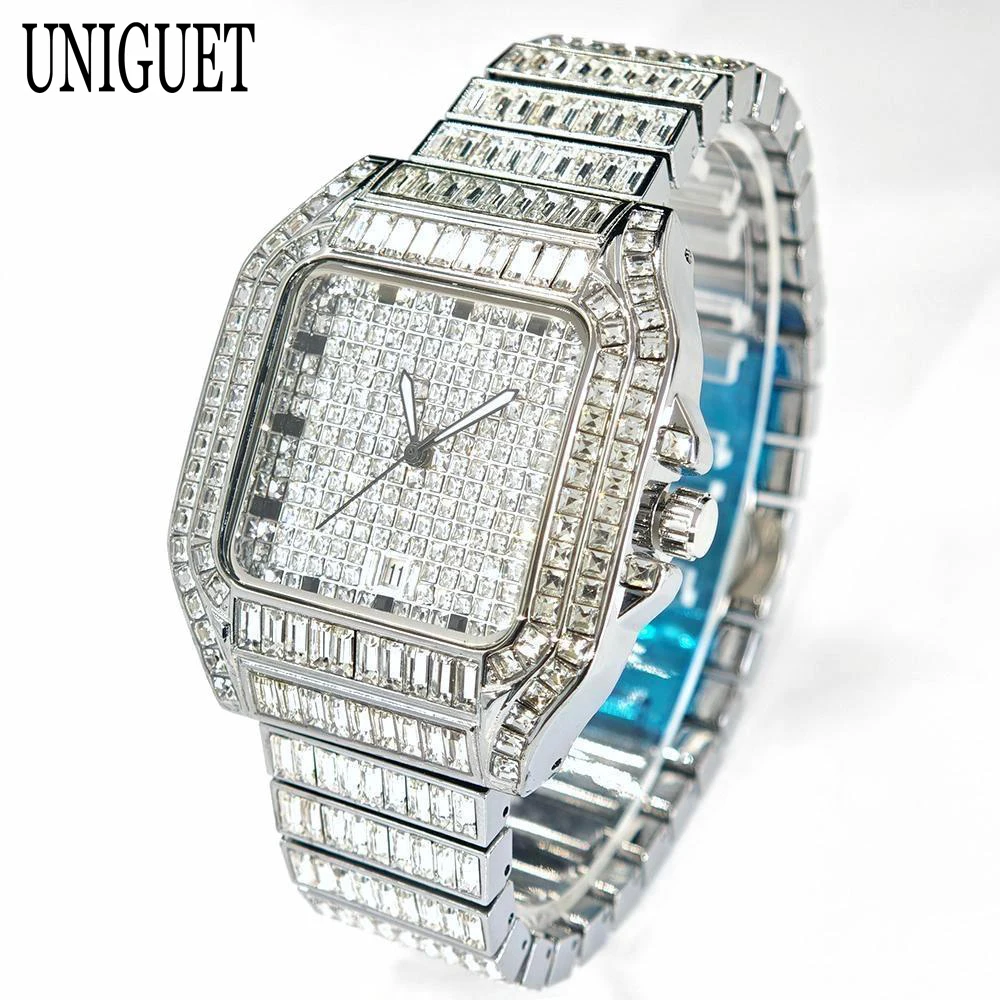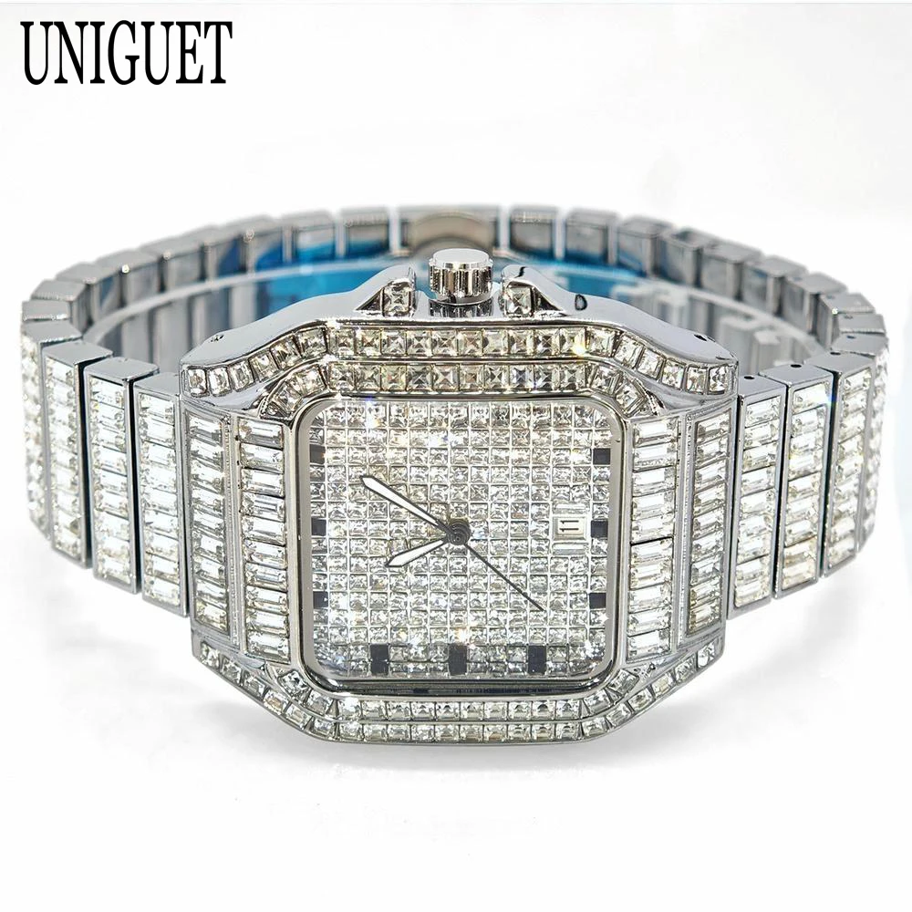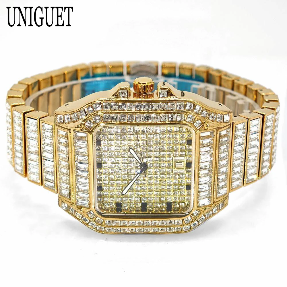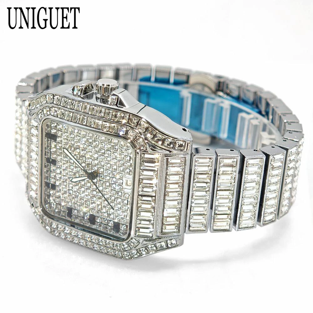 Luxury Rose Watch For Man Fashion Stainless steel Quartz Watches Men Hip Hop Rectangle Iced Out Diamond Wrist Watch reloj hombre