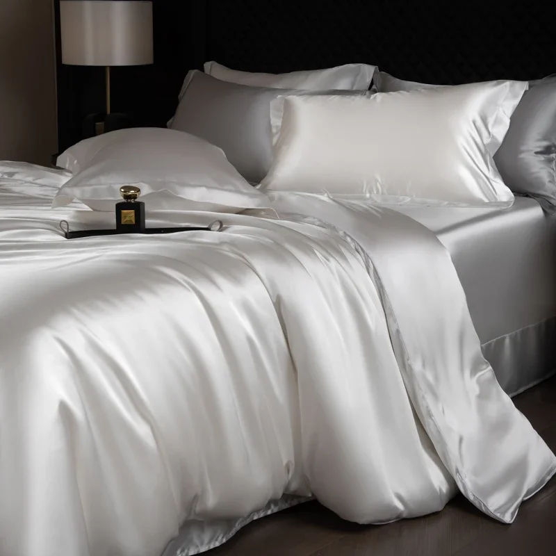 Silk Bed Sheets Set Luxury Bedding Set with Duvet Cover Fitted/Flat Bedheet Pillowcases Mixed with Rayon King Queen Full Twin